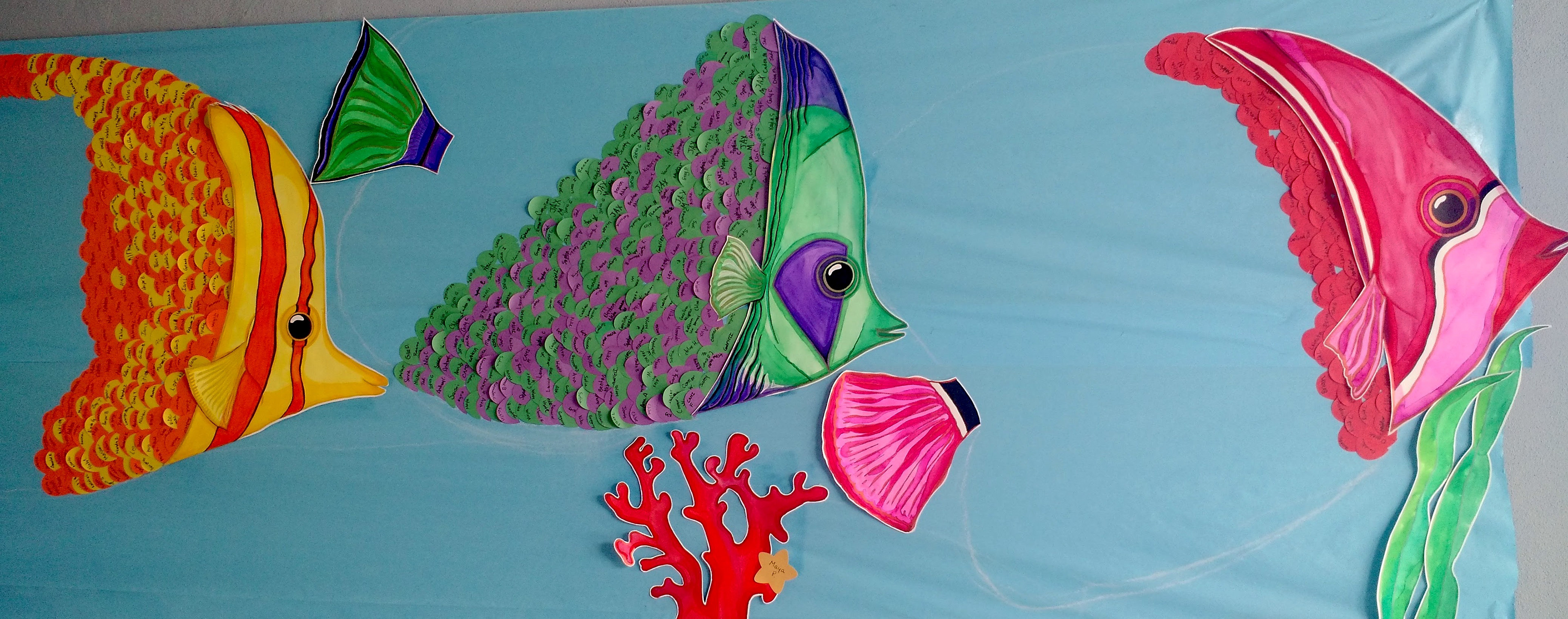 Big watercolor and acrylic wall art for yearly elementary collaboration projects (2015-2016)